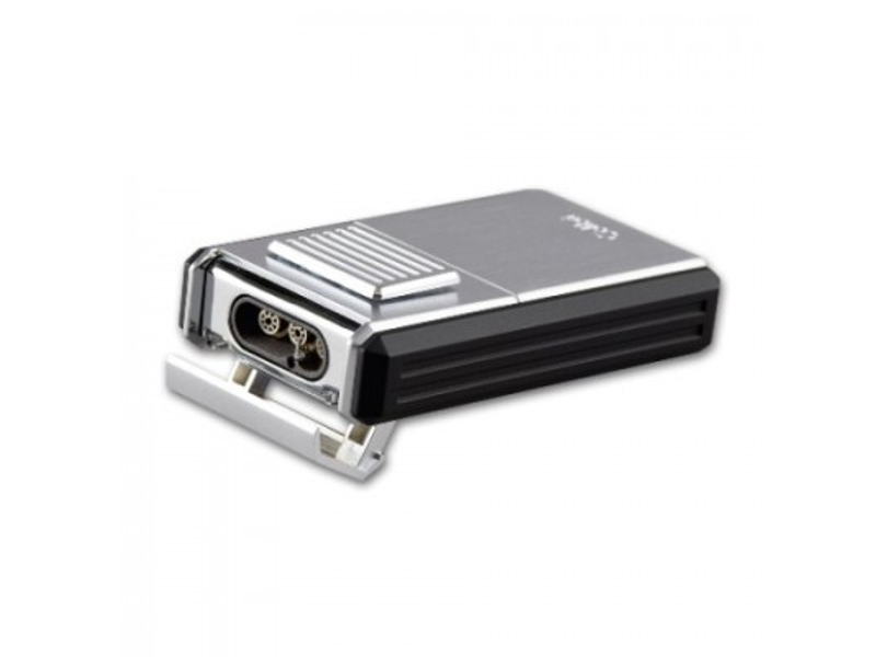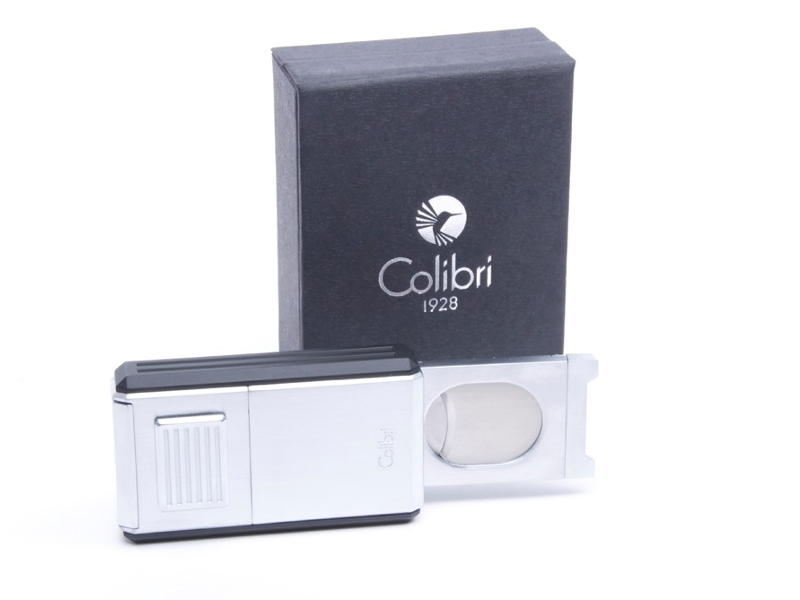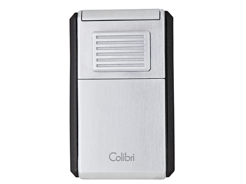 Nagy méretű, Colibri Astoria króm, szúrólángos szivaröngyújtó, kétoldalán fekete betéttel, alján kihajtható szivarvágóval. Állítható, 3db szúrólángos, újratölthető szivaröngyújtó.