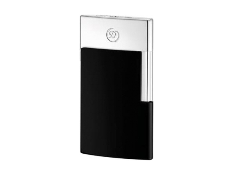 Ultrakönnyű és nagyon vékony S.T. Dupont E-Slim USB szivaröngyújtó fekete és ezüst színkompozícióban, 220 mAh akkumulátorral. Könnyen meggyullad szinte bármilyen szélben. Az öngyújtó gáz nélkül működik, a mellékelt Micro USB-kábellel tölthető
