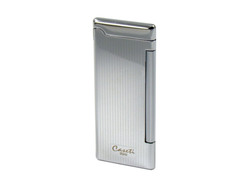 Elegáns Caseti Étroit szivar öngyújtó - rendkívül vékony kialakítású tűzköves gyújtással. A kiváló minőségű Caseti Étroit szivar öngyújtó fényes króm felületű, finoman vésett csíkokkal díszítve. A Caseti Étroit szivar öngyújtó minden nap örömet szerez tulajdonosának, kényelmet és könnyű használatot biztosítva számára.