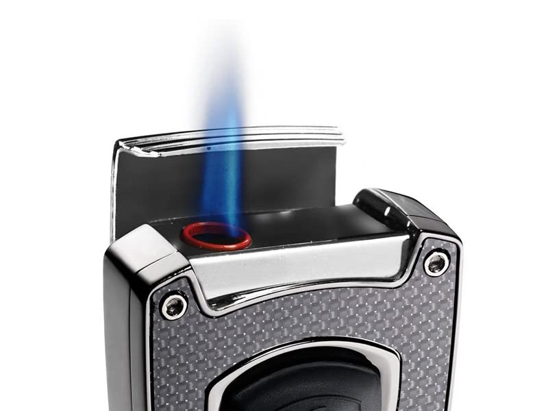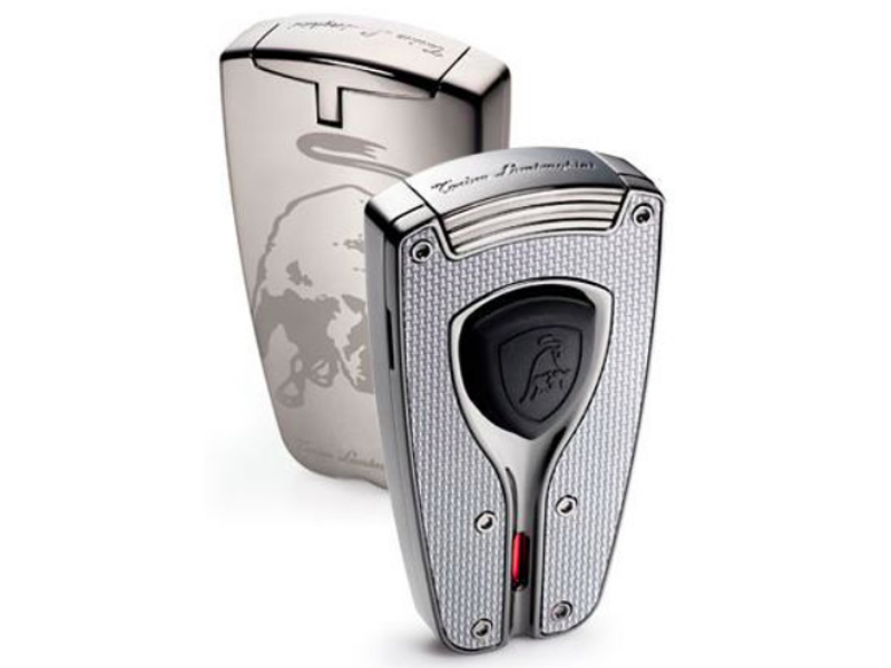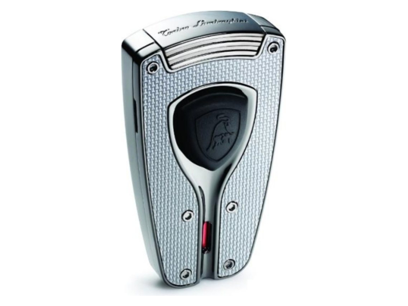Lamborghini Forza fényes ezüst és karbonszálas díszítésű szivar öngyújtó . A Lamborghini Forza szivar öngyújtó egy modern szivaröngyújtó - stílusos, tökéletesen formázott részletekkel. A Lamborghini Forza szivar öngyújtó gyújtógombjának lenyomásával a tetejét oldalra billentve egy izzó, kék JET-láng jelenik meg, amely ideális szivar meggyújtására.