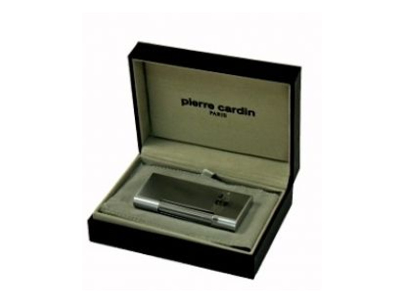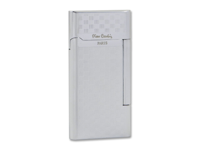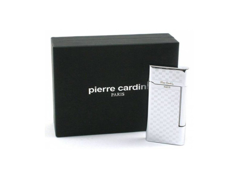 Tűzköves, világos ezüst színű, elegáns, króm Pierre Cardin szivaröngyújtó, oldalán kockás mintával. Állítható lángméretű, újratölthető elegáns stílusú és praktikus formájú szivar öngyújtó.