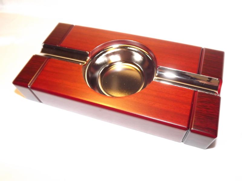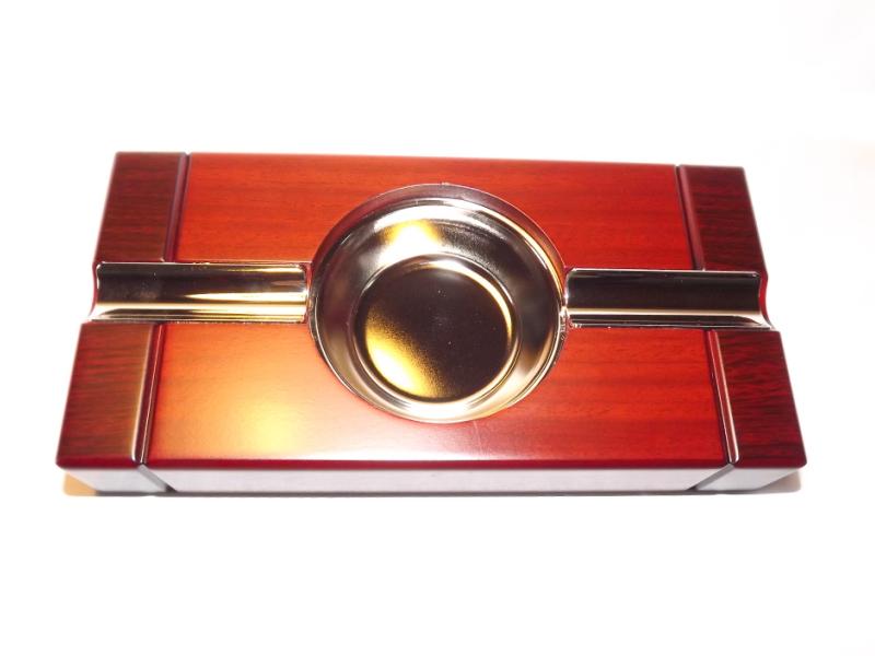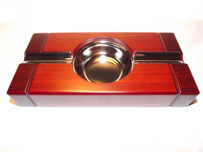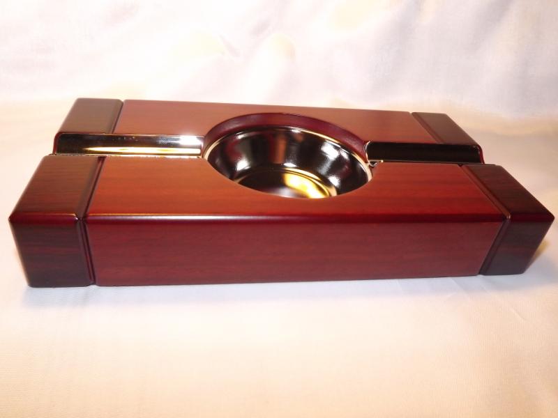Diófa dekoros szivar hamutartó két szál szivar részére, fém betéttel.