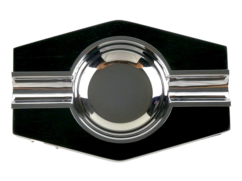 A hamutartó fekete tömör fából készült, nagyon szép, szögletes alakú, króm hamutartó betéttel. Nagyon szép, jól elkészített hamutartó a szivarok számára, kétoldalt bemélyedéssel 2 szivar számára. A szivar hamutartónak a méretét és alakját optimálisan alakítják ki a szivarokhoz.