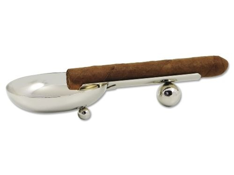 Nemes acél hamuzó szivarnak. 3 db gömb lábon álló, kanál formájú szivar hamutartó, hosszú szivartartóval.