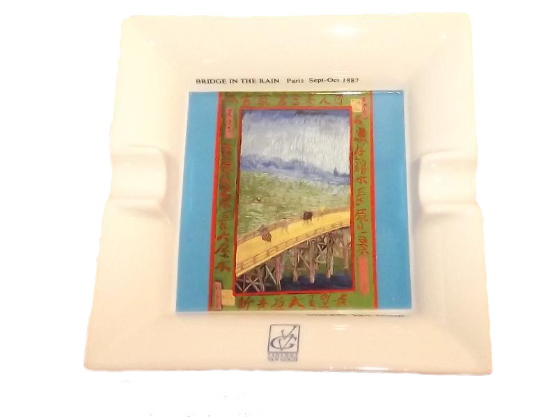 Porcelánból készült, fehér színű szivar hamutartó, 2 szivarnak elegendő hellyel. A szivar hamutartót Vincent Van Gogh "Híd az esőben" című festménye díszíti.