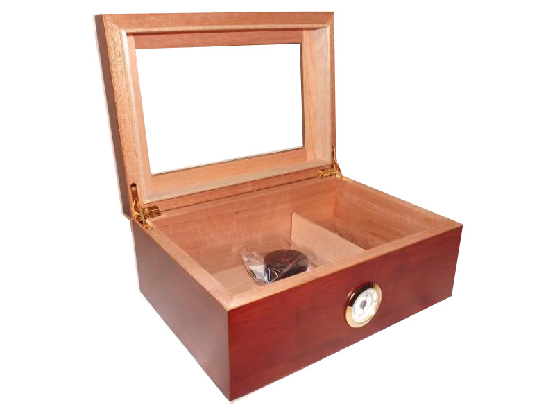 Humidor 50 szivar részére, cédrusfa szivar doboz, üvegtetős, párásítóval és hygrométerrel - barna