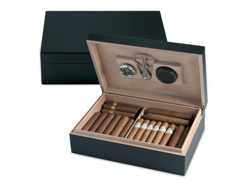 Medici Humidor 50 szál szivar tárolására alkalmas, cédrusfa belsővel, fekete színben.