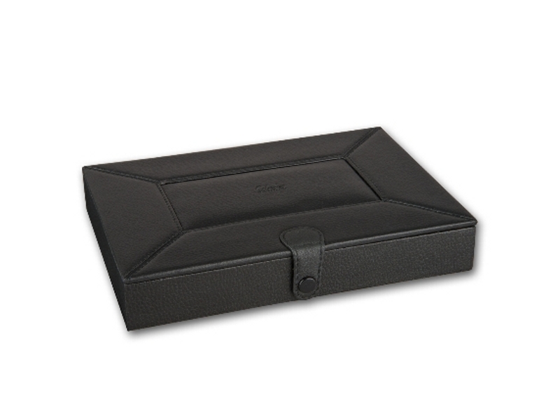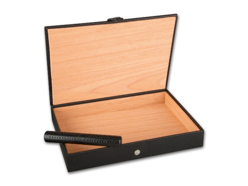 Utazó humidor "Columbus" - cédrusfa szivartartó doboz, párásítóval, fekete bőr borítású