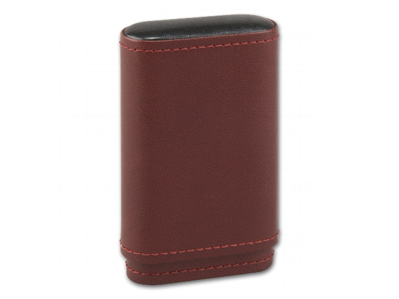 Barna színű bőr cigarillo tok, 5 szálas, cédrusfa belsővel. Teleszkópos. A teteje fekete színű bőrrl díszítve. Mérete: 100 x 55 x 16 mm