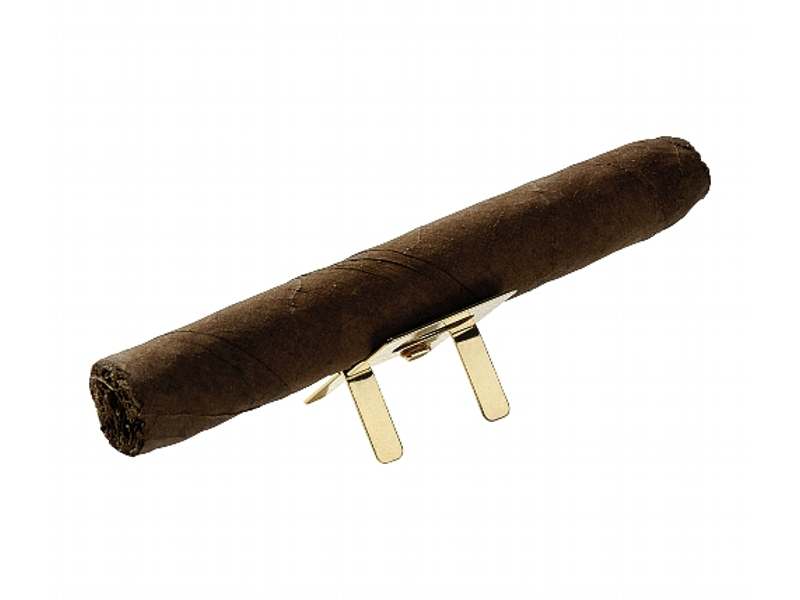 Arany színű, kis méretű, asztali szivartartó 1 szivar részére. Fémből készült, összecsukható, így bárhová magával viheti.