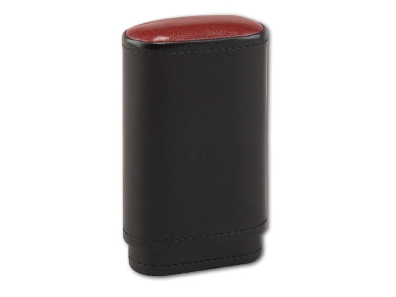 Fekete színű bőrből készült szivartok, 3 szál szivar tárolására alkalmas, spanyol cédrusfa belsővel.