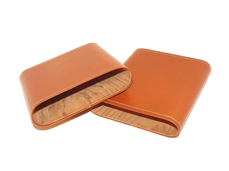 Ez a szivartok 5 szivar tárolására alkalmas. Valódi bőrből és cédrusfa belsővel készült. Barna, az oldalán fekete színű betéttel. Kézzel készített.