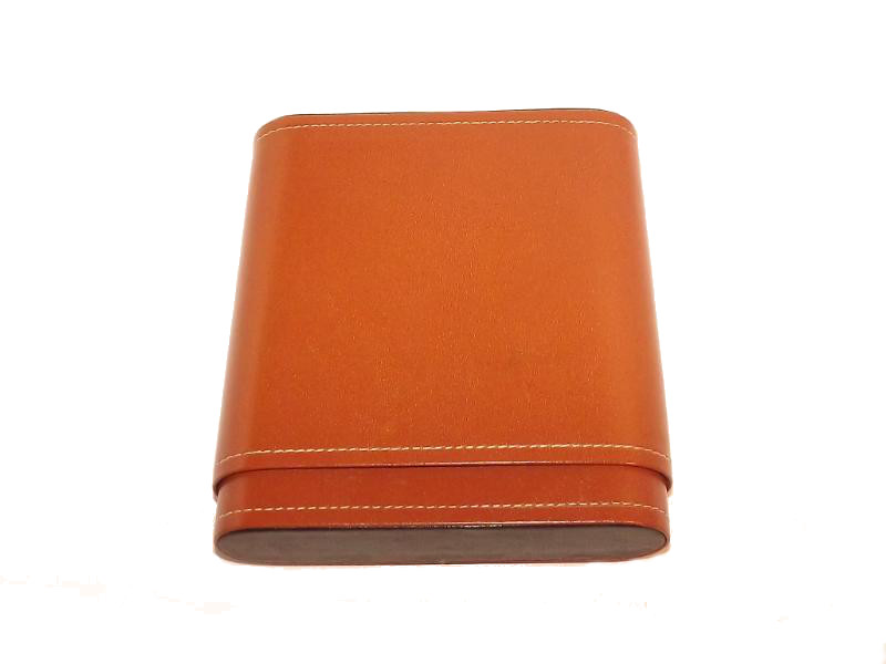 Barna bőr szivartok 5 szivar tárolására, cédrusfa belsővel. A tetején fekete színű betéttel.