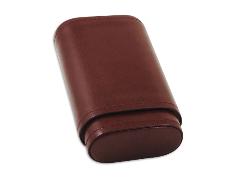 Klasszikus, tartós, barna bőrből készült praktikus szivartok, cédrusfa belsővel. 3 szál szivar biztonságos szállítására alkalmas. A szivartok teteje fekete színű bőrrel díszítve.