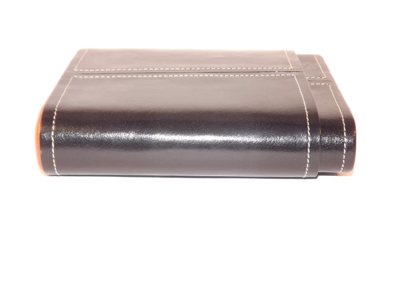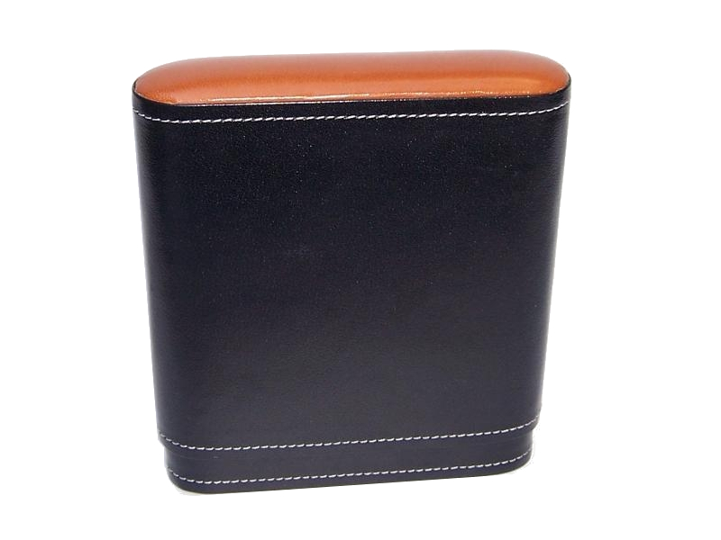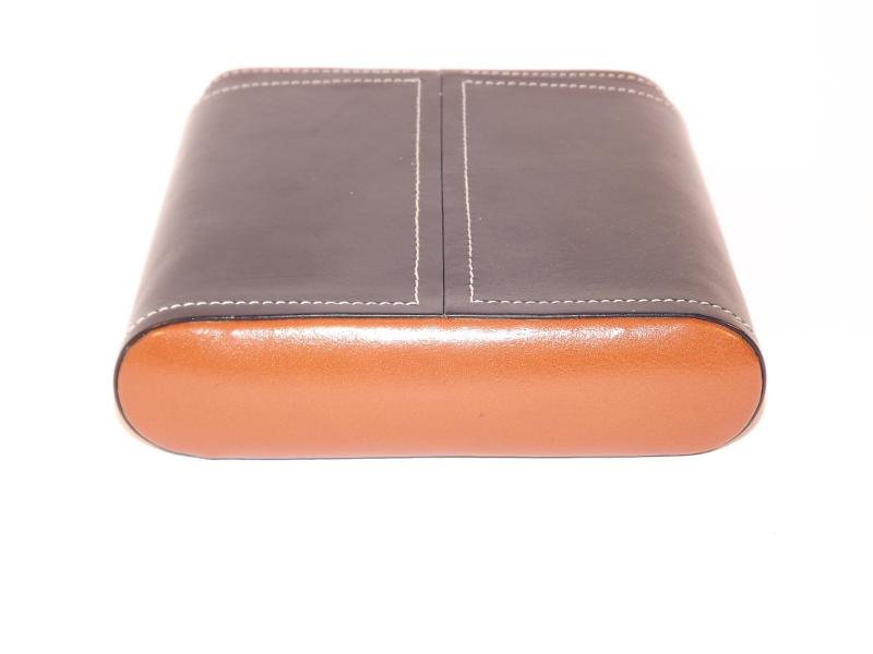 Ez a szivartok 5 szivar tárolására alkalmas. Valódi bőrből és cédrusfa belsővel készült. Fekete, az oldalán barna színű betéttel. Kézzel készített.