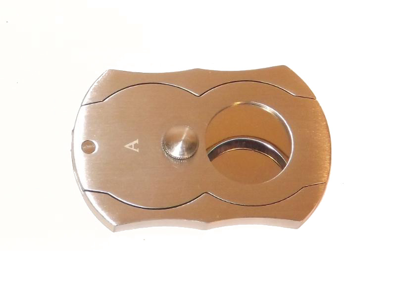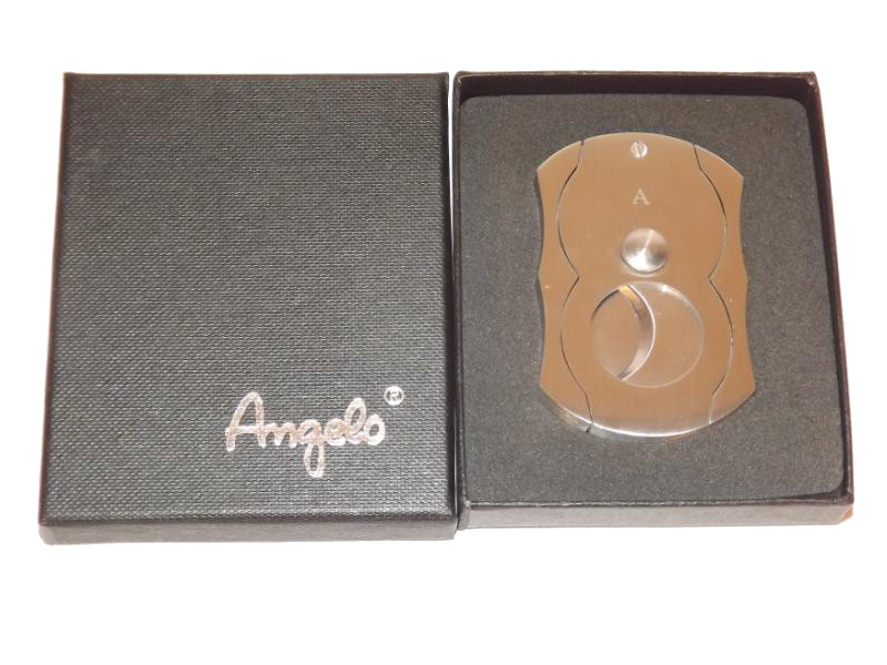 Ezüst színű, rozsdamentes acél Angelo szivarvágó.