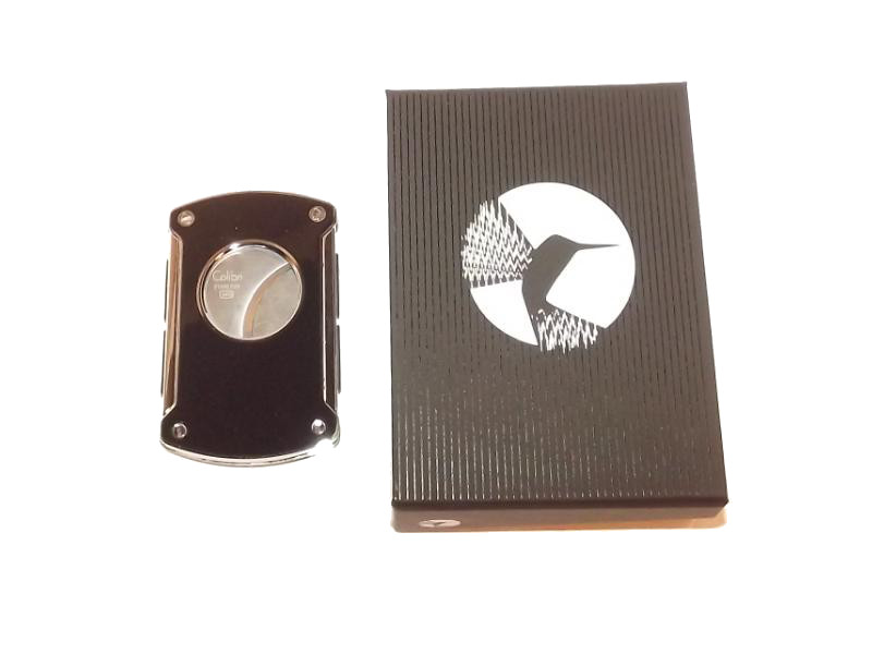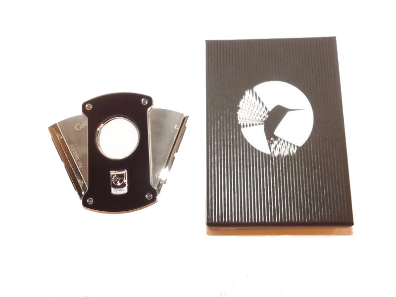 Ezüst és fekete színű, két élű Colibri szivarvágó, rozsdamentes acélból. Ezt a szivarvágót úgy tervezték, hogy illeszkedjen a kéz formájához, így fogása kényelmes.