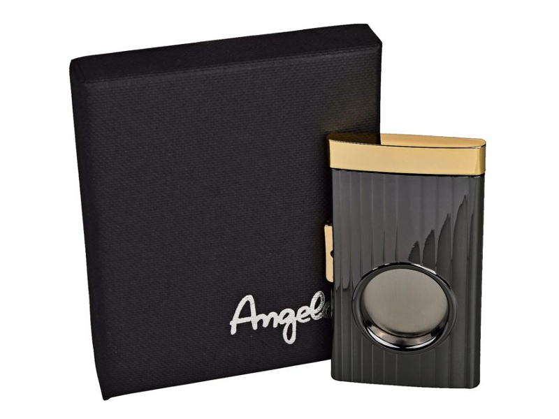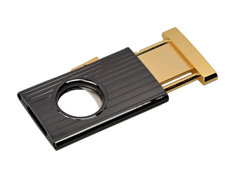 Kétujjas nemesacél szivarvágó, füstszínű, szögletes-forma, max. 22 mm-es átmérőjű szivarok vágására alkalmas. Mérete: 75 x 43 mm.