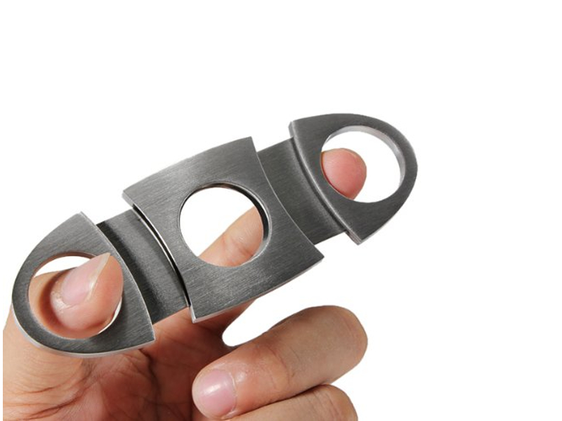 Kettős pengéjű rozsdamentes acél szivar vágó, guillotine elven működik. Könnyen kezelhető két ujjal. Mérete: 9 x 4 x 0,5 cm