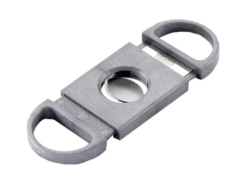 Rozsdamentes acélból készült, kétélű szivarvágó, szürke színű műanyag bevonattal. Egyszerű, kis helyen elfér. Max. 20 mm-es átmérőjű szivarok vágására alkalmas.